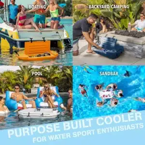 - Cooler can float, be towed, or anchored for versatile use in the water